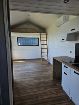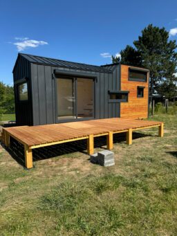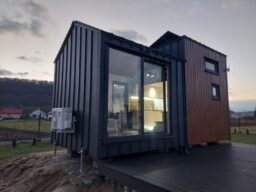 To domek mobilny, który ze względu na wymiary może być zbudowany na przyczepie z homologacją. Bez trudu będziesz mógł poruszać się z nim po drogach.