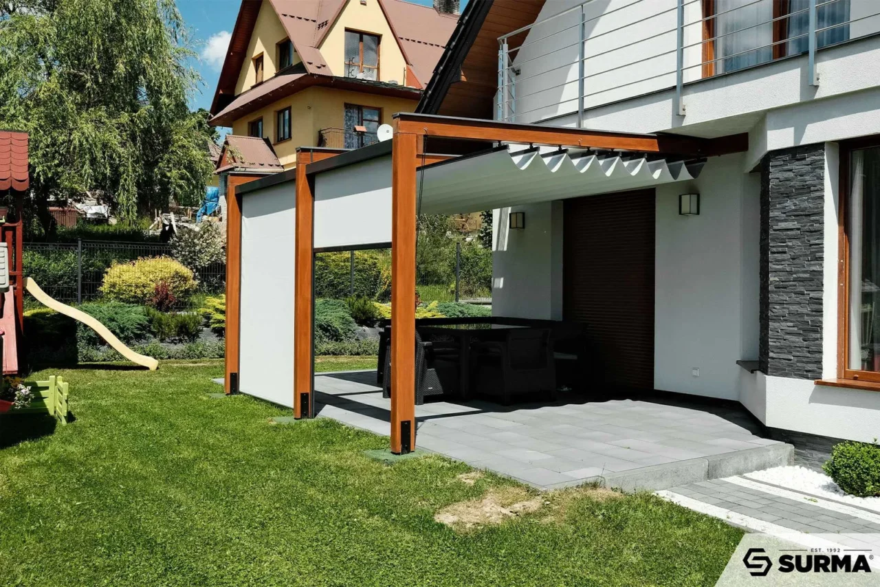 z książką, spotkanie z przyjaciółmi lub zabawa z dziećmi? Pergola to ochrona, która pozwoli Ci cieszyć się tarasem nawet w trudnych warunkach pogodowych.