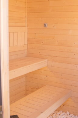 Nowoczesna sauna ogrodowa o wymiarach 2,0 x 2,5 m to połączenie minimalistycznej formy z maksymalnym komfortem użytkowania. Jej geometryczny kształt, ciemna elewacja i jasne, drewniane wnętrze sprawiają, że świetnie wpisuje się zarówno w nowoczesne ogrody, jak i bardziej naturalne otoczenie. To idealna przestrzeń do relaksu dla 2–4 osób.