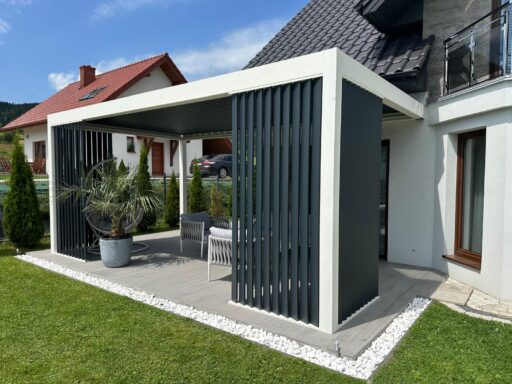 Stwórz wyjątkową i funkcjonalną strefę relaksu, która będzie dostosowana do Twoich potrzeb. Nastrojowe oświetlenie i obracane lamele dachowe, które aktywujesz jednym kliknięciem pilota sprawiają, że użytkowanie przydomowej przestrzeni nigdy nie było łatwiejsze. Aluminiowa konstrukcja oraz najwyższej jakości materiały pozwolą Ci cieszyć się pergolą bez konieczności stosowania uciążliwych zabiegów konserwacyjnych.